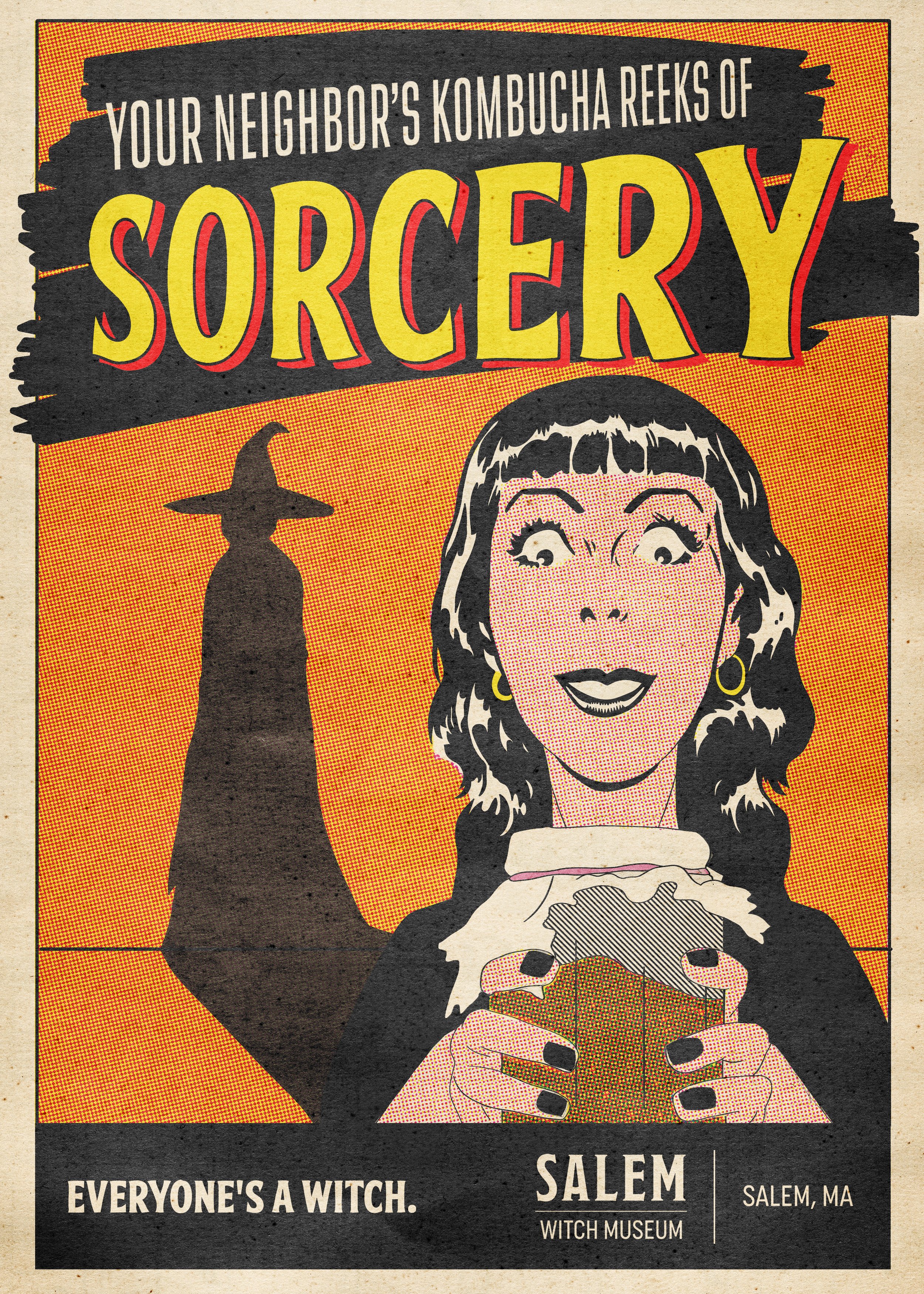 Everyone’s a Witch Witch hunts are a time honored tradition. To get people interested in the history, we’ll run it back. Local comedians will accuse visitors of witchcraft and put them on trial. Don’t forget to stop by the gift shop! Art Director: John Zielinski