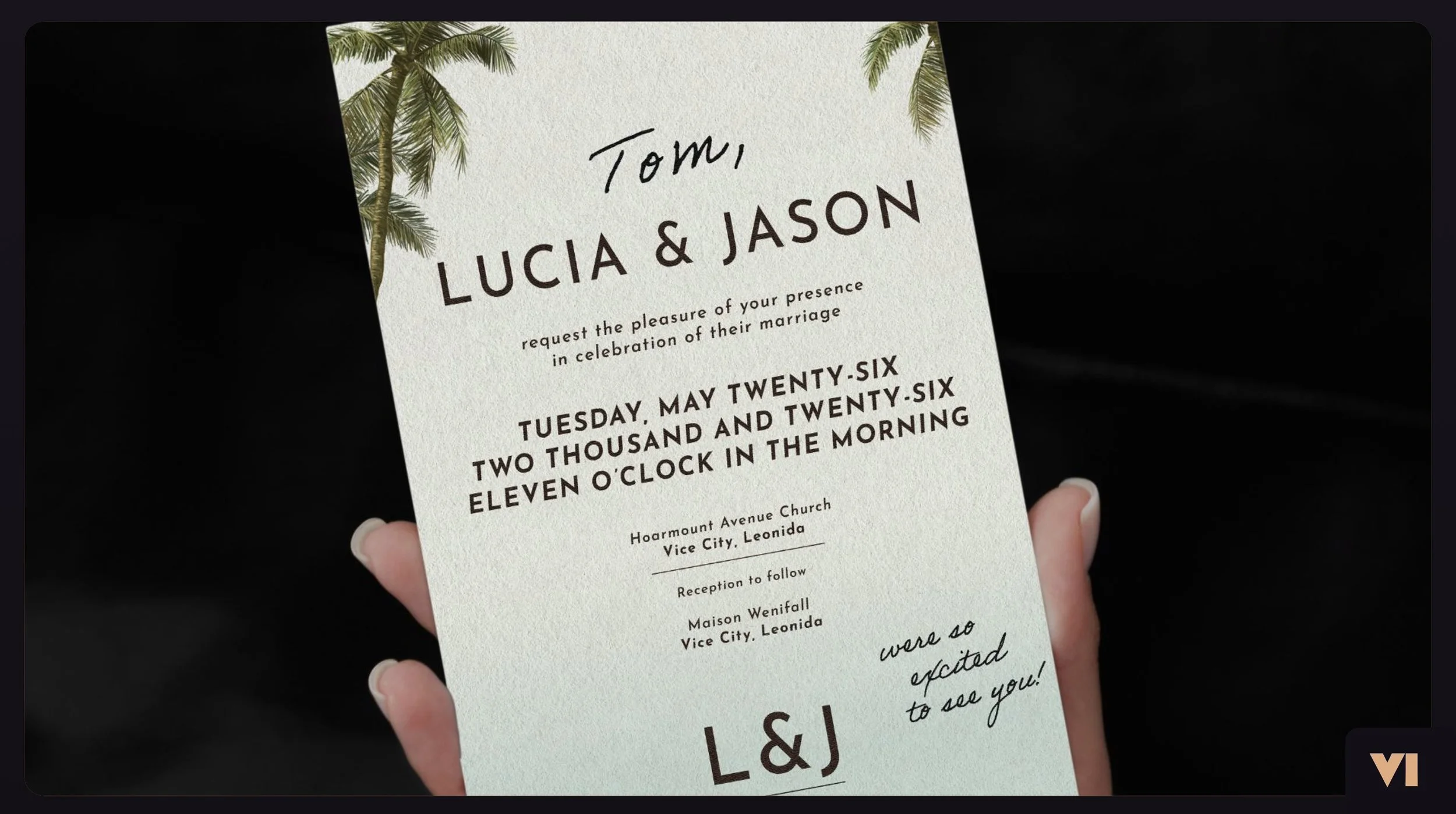 GTA fans have a big f★★★★★★ problemo. The biggest game of 2026, Grand Theft Auto VI, is coming out on a weekday. So we’re throwing a fake wedding to get people out of whatever they have going on. After pre-ordering GTA VI, fans can register for The Wedding Job through our real fake wedding website: All items in the registry are available to participants as in-game items: Sit back, relax, and plan your day off. We’ll provide all the evidence you need. Art Director: Ben Crispin My contributions: Script, invitation copy, voiceover, wedding website, and press mockup.