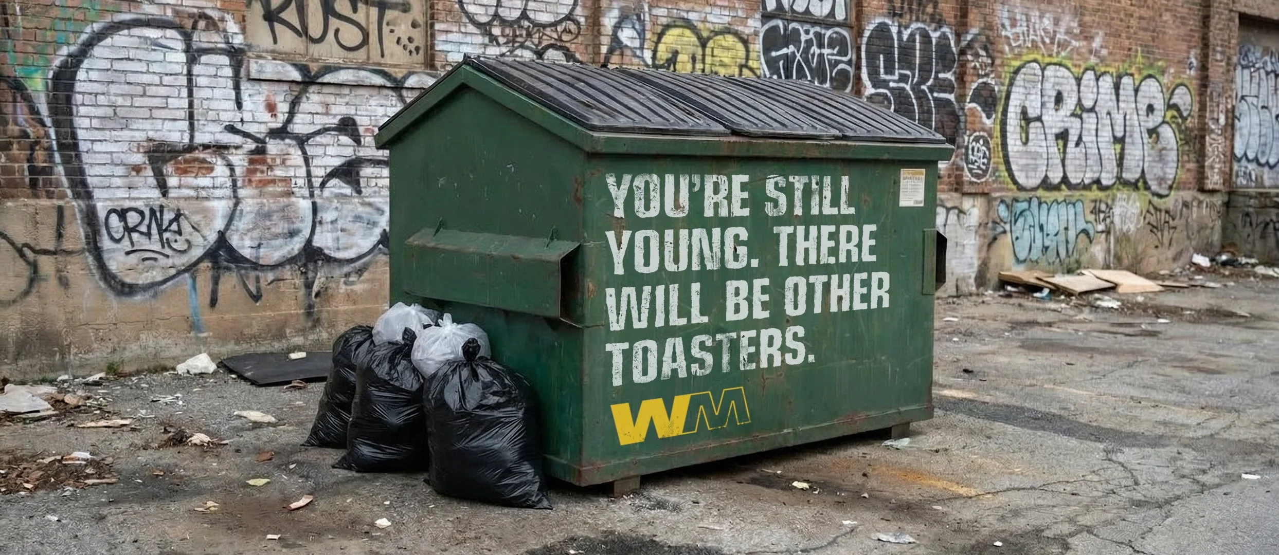 A Better Place Taking out the trash isn’t difficult. But it feels difficult sometimes. This brand book transforms Waste Management into a comforting voice in your ear, letting you know that it’s time to let go. Slide 1 Slide 1 (current slide) Slide 2 Slide 2 (current slide) Slide 3 Slide 3 (current slide) Slide 4 Slide 4 (current slide) Slide 5 Slide 5 (current slide) Slide 6 Slide 6 (current slide) Slide 7 Slide 7 (current slide) Slide 8 Slide 8 (current slide) Slide 9 Slide 9 (current slide) Slide 10 Slide 10 (current slide) Slide 11 Slide 11 (current slide) We placed our message where people need to hear it the most. Want to keep your lost belongings close? Now you can: Waste Management will cremate your trash and send it back to you in a custom urn. My contributions: Concept, tagline, headlines, color names, manifesto, and tone of voice. Art Director: Max Dotson